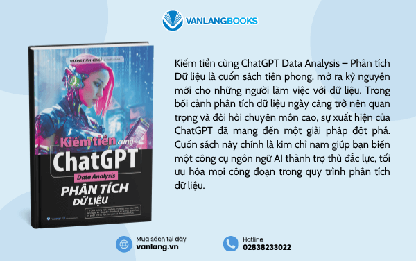 Trong kỷ nguyên số, dữ liệu được ví như "vàng đen" và khả năng phân tích dữ liệu trở thành một kỹ năng cực kỳ giá trị. Sự ra đời của ChatGPT đã mở ra một hướng đi mới, biến công cụ AI này thành trợ thủ đắc lực cho những ai muốn kiếm tiền cùng ChatGPT - Data Analysis - Phân Tích Dữ Liệu. Cuốn sách đột phá từ Vanlangbooks này chính là kim chỉ nam, giúp bạn tối ưu hóa mọi công đoạn và khai phá tiềm năng kinh tế từ dữ liệu một cách hiệu quả nhất. Tìm hiêu ngay cùng Vanlang.vn!