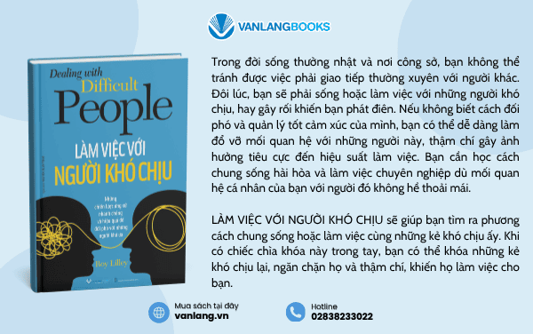 Trong môi trường công sở hiện đại, việc gặp gỡ và làm việc với những người có tính cách khác biệt, thậm chí là "khó chịu", là điều không thể tránh khỏi. Làm thế nào để duy trì sự chuyên nghiệp, hiệu suất công việc mà không làm tổn hại đến các mối quan hệ? Để giải quyết vấn đề nan giải này, Nhà sách Văn Lang đã ra mắt sách Làm Việc Với Người Khó Chịu của tác giả Roy Lilley. Đây là một "chiếc chìa khóa" giúp bạn mở cánh cửa thành công trong mọi mối quan hệ công việc. Khám phá ngay cùng vanlang.vn!