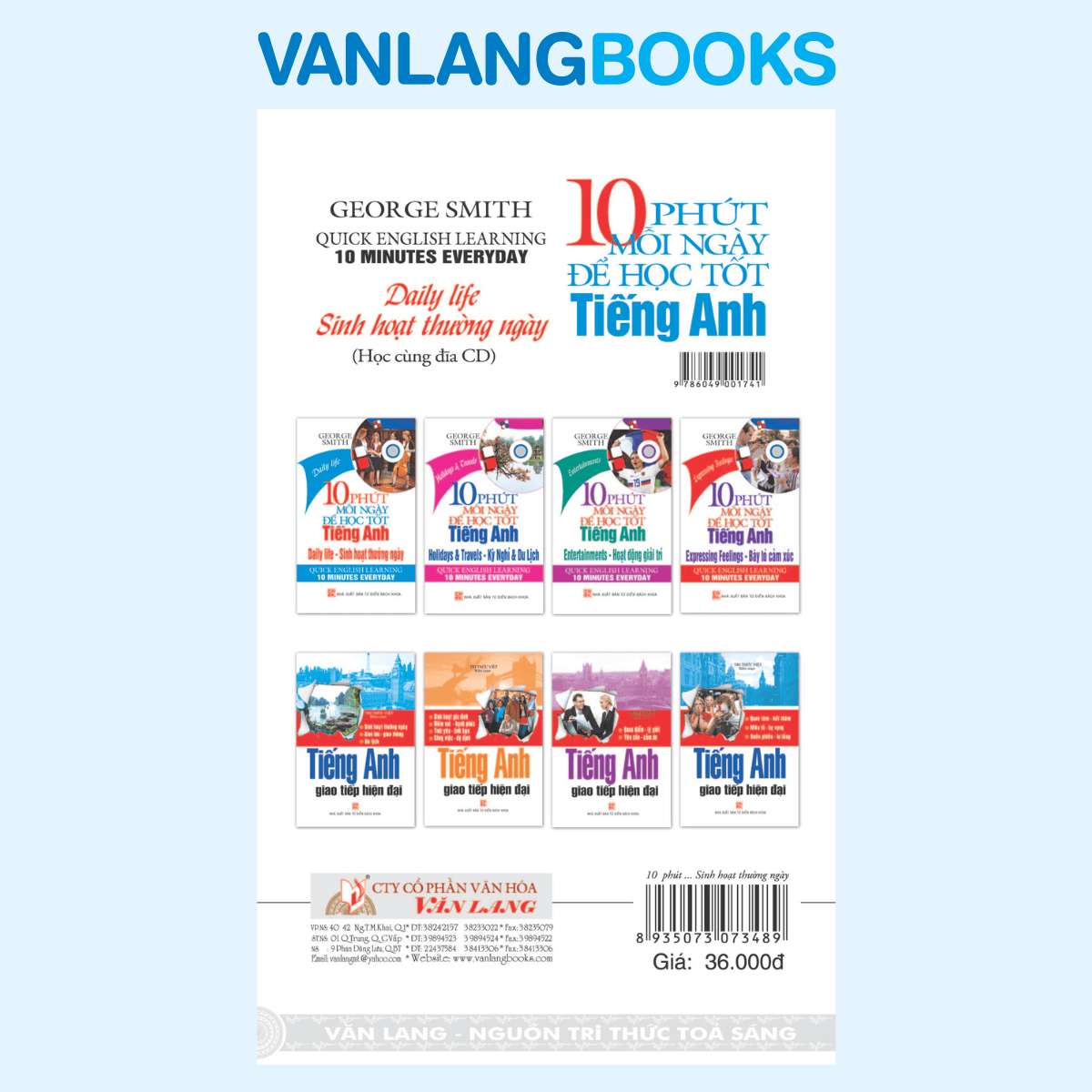 Kèm theo đĩa CD luyện nghe và phát âm, người học có thể rèn luyện kỹ năng nói – nghe chuẩn xác, tạo phản xạ tự nhiên như người bản ngữ chỉ với 10 phút mỗi ngày. Dù bạn là người mới bắt đầu hay muốn củng cố vốn tiếng Anh giao tiếp, cuốn sách sẽ giúp bạn tự tin hơn trong mọi hoàn cảnh.