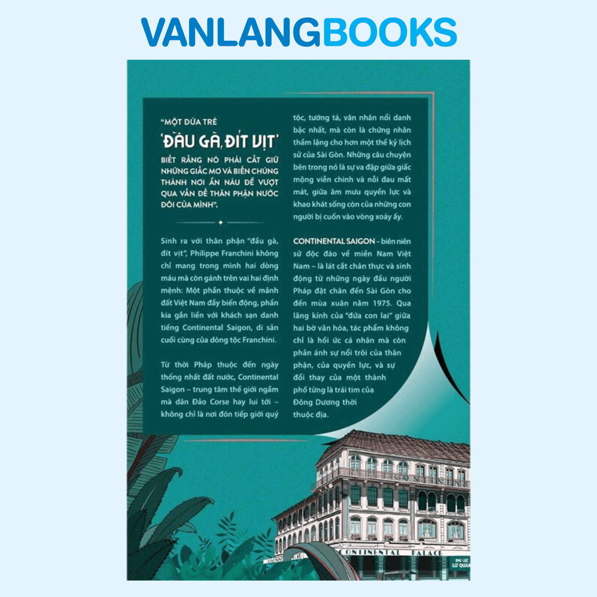 Continental Saigon – Từ Hào Quang Đế Quốc Đến Giấc Mộng Đông Dương Tan Vỡ là bức ký họa sống động về một trong những khách sạn lâu đời và biểu tượng văn hóa nổi tiếng nhất của Sài Gòn. Không chỉ tái hiện lịch sử của một công trình, cuốn sách mở ra cả một thế kỷ đầy biến động của miền Nam Việt Nam nơi đời sống nghệ sĩ, văn nhân, trí thức và các xung đột chính trị – xã hội đan xen, tạo nên một “bản giao hưởng” vừa lãng mạn vừa bi tráng. Từ những giấc mộng Đông Dương thời thuộc địa đến biến động lịch sử mùa Xuân năm 1975, tác giả Philippe Franchini dẫn dắt người đọc vào hành trình nơi ký ức hòa quyện với hiện thực, nơi số phận con người xoay vần theo những chuyển động lịch sử. Bằng vốn hiểu biết uyên bác và giọng văn hoài niệm, ông biến Continental Saigon thành một “nhân chứng sống” nơi mỗi trang sách đều vang vọng tiếng thời gian, gợi lại những ký ức khó phai về một Sài Gòn xưa đầy bồi hồi.