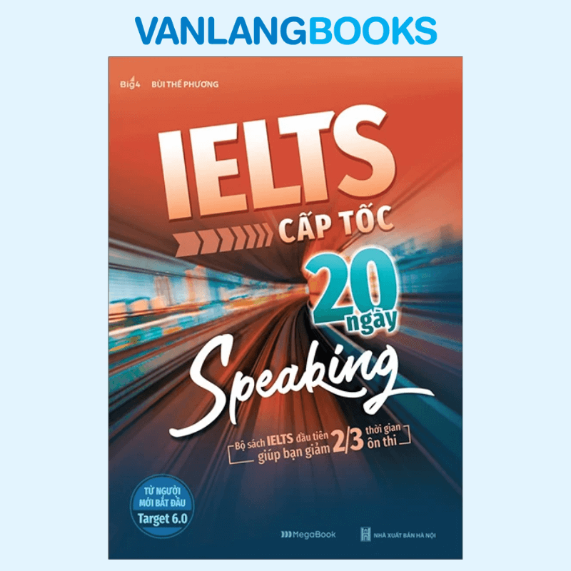 IELTS Cấp Tốc – 20 Ngày Speaking là cuốn sách nằm trong bộ IELTS Cấp Tốc 20 Ngày, được biên soạn nhằm giúp người học rút ngắn đến 2/3 thời gian ôn luyện IELTS nhưng vẫn đảm bảo hiệu quả và tính hệ thống. Cuốn sách tập trung hoàn toàn vào kỹ năng Speaking, xây dựng lộ trình học rõ ràng trong vòng 20 ngày. Người học chỉ cần xác định mục tiêu band điểm, sắp xếp thời gian học phù hợp và tuân thủ đúng lộ trình trong sách để nâng cao khả năng nói một cách bài bản, tự tin và có chiến lược.
