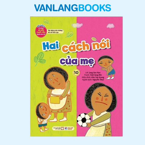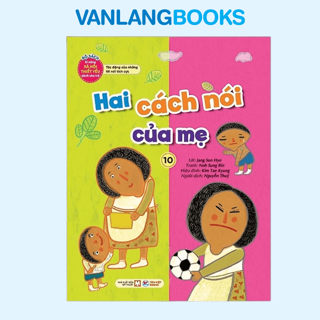 “Kĩ năng xã hội thiết yếu dành cho trẻ 10 – Hai cách nói của mẹ” là một phần trong bộ Bộ Sách Kĩ Năng Xã Hội Thiết Yếu dành cho trẻ em, tập trung phát triển các kĩ năng xã hội quan trọng từ tuổi thơ. Cuốn sách mang đến những câu chuyện tranh sinh động phù hợp với tâm lý và quan điểm của trẻ, giúp bé học cách rèn luyện kĩ năng xã hội một cách tự nhiên trong đời sống hàng ngày. Thông qua hình ảnh minh họa ấn tượng và các tình huống gần gũi trẻ có thể tập trung theo dõi câu chuyện và học hỏi cách ứng xử, chia sẻ suy nghĩ với bạn bè và cha mẹ. Phần phụ lục ở cuối sách giúp trẻ phát triển tư duy độc lập, rèn luyện giá trị xã hội và học cách lắng nghe lời khuyên. Bộ sách được Viện Giáo dục và Văn hóa Trẻ em Hàn Quốc bình chọn là bộ sách hay nhất. Trong cuốn sách này, tác động của lời nói được thể hiện rõ qua hai cách nói của mẹ khi con mắc lỗi: một người mẹ dịu dàng nói “Không sao đâu!” trong khi người kia thường nói “Không được! Đừng làm!”. Hai cách nói khác nhau này ảnh hưởng trực tiếp đến tâm trạng của trẻ, giúp trẻ cảm thấy vui vẻ, hứng khởi hoặc buồn chán, tuyệt vọng…