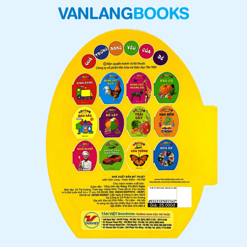 Quả Trứng Đáng Yêu Của Bé – Côn Trùng là cuốn sách được thiết kế dành riêng cho trẻ ở độ tuổi nhà trẻ và mầm non – giai đoạn bé bắt đầu hình thành nhận thức và niềm yêu thích khám phá thế giới xung quanh. Thông qua hình thức trình bày sinh động và gần gũi, cuốn sách giúp bé làm quen với thế giới côn trùng một cách tự nhiên, nhẹ nhàng và đầy hứng thú. Với khuôn khổ sách độc đáo cùng màu sắc bắt mắt, mỗi trang sách như một “quả trứng đáng yêu” mở ra tri thức mới, giúp bé tiếp cận kiến thức một cách dễ hiểu, phù hợp với khả năng nhận thức ở những năm đầu đời.