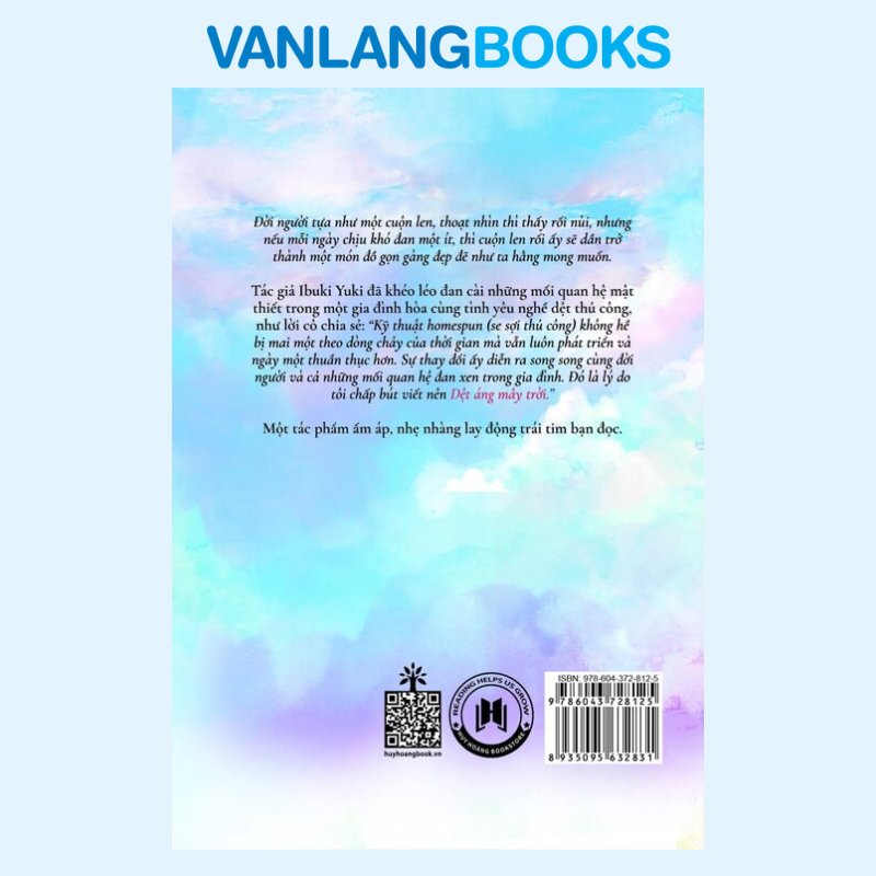 “Đời người tựa như một cuộn len, thoạt nhìn chỉ thấy rối nùi, nhưng nếu mỗi ngày chịu khó đan một ít, thì cuộn len rối ấy sẽ dần trở thành một món đồ gọn gàng đẹp đẽ như ta hằng mong muốn.” Dệt Áng Mây Trời là một câu chuyện nhẹ nhàng, ấm áp của tác giả Ibuki Yuki, nơi những mối quan hệ gia đình được khéo léo đan cài cùng tình yêu dành cho nghề dệt thủ công truyền thống. Thông qua kỹ thuật homespun (se sợi thủ công), tác giả gửi gắm triết lý sống sâu sắc: con người cũng như sợi len – cần sự kiên nhẫn, cẩn trọng và chân thành để dệt nên một cuộc đời có ý nghĩa. Cuốn sách không chỉ kể về nghề thủ công, mà còn là hành trình chữa lành, nơi từng thao tác chậm rãi giúp con người học cách lắng nghe, thấu hiểu và trân trọng những điều bình dị trong cuộc sống.