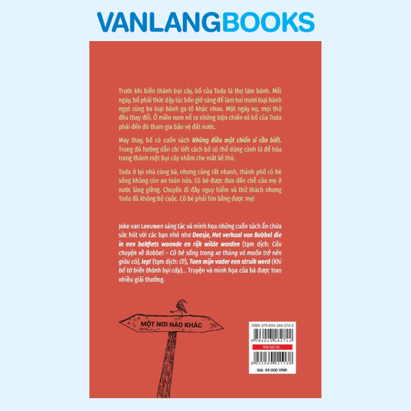 Khi Bố Tớ Biến Thành Bụi Cây của Joke Van Leeuwen mở ra như một câu chuyện cổ tích kỳ lạ, nơi người bố có thể “biến thành bụi cây”. Nhưng đằng sau hình ảnh tưởng như nhiệm màu ấy là hiện thực khắc nghiệt của chiến tranh, được kể lại qua góc nhìn hồn nhiên của một cô bé. Bố của em chỉ là một người thợ làm bánh “giỏi nhất” trong mắt con, nhưng vì chiến tranh, ông buộc phải rời xa lò nướng quen thuộc để tham gia vào một “phe” mà chính em cũng không hiểu rõ. Để an toàn, bố phải cải trang thành bụi cây, còn em – không thể biến thành bụi cây – buộc phải lên đường tìm mẹ ở nơi không có chiến tranh. Hành trình ấy đầy thử thách, sợ hãi và cả những khoảnh khắc vừa buồn vừa ấm áp, nhưng cũng chính là hành trình giúp em lớn lên bằng niềm tin, tình yêu thương và sự dũng cảm.