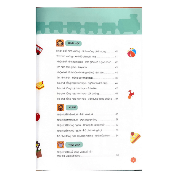 Với phong cách minh họa bằng những vật thể gần gũi như con vật, trái cây, đồ dùng quen thuộc, cuốn sách không chỉ kích thích sự tò mò, mà còn mang đến cảm hứng học tập cho bé. Đây là một nền tảng vững chắc để trẻ phát triển tư duy logic và khả năng tập trung trong những năm đầu đời.