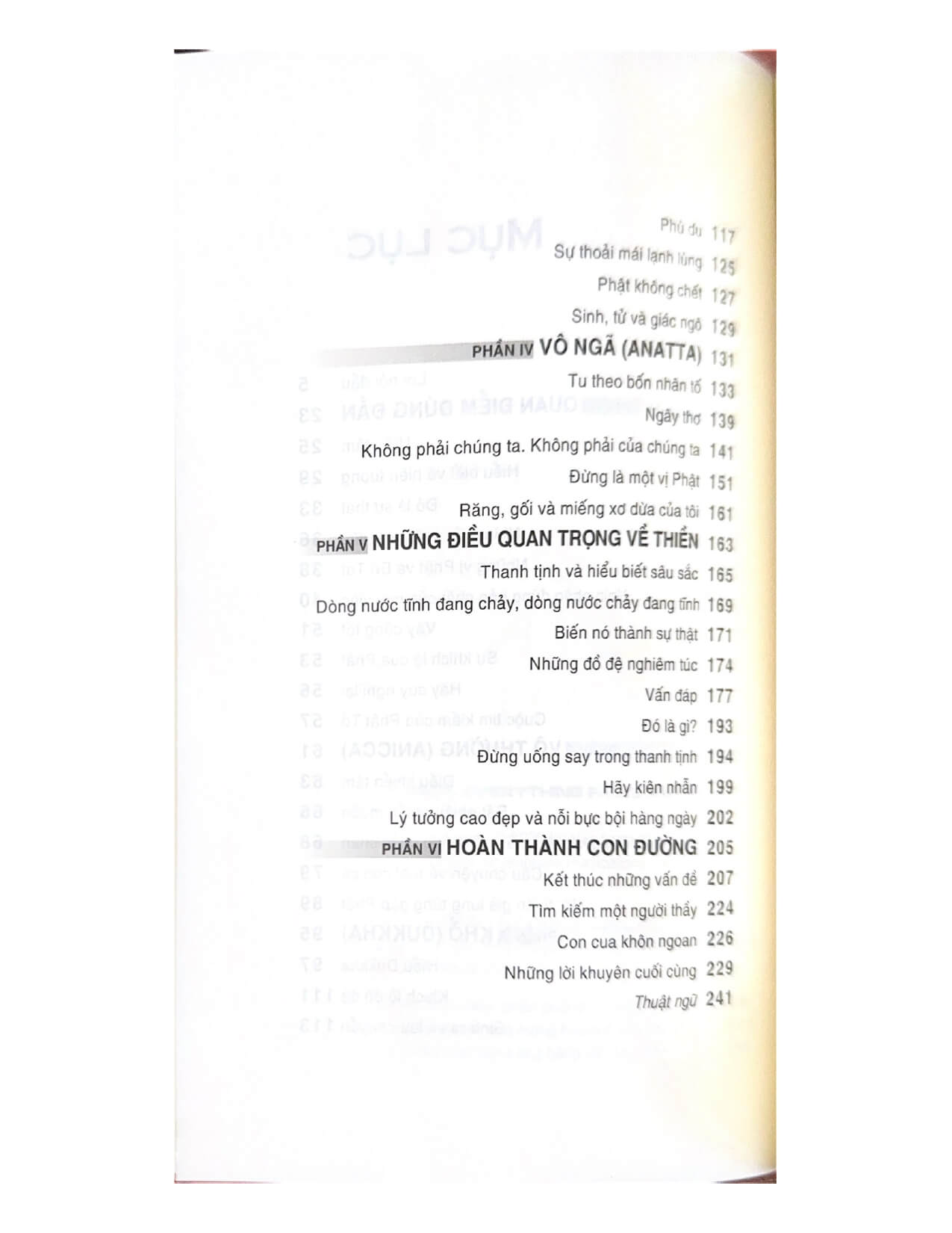Tập hợp những bài giảng tinh túy của Thiền sư Ajahn Chah, được biên tập bởi Paul Breiter, cuốn sách khơi mở con đường tỉnh thức qua việc buông bỏ, không dính mắc, và thực hành hiểu biết về vô ngã. Bằng ngôn ngữ mộc mạc nhưng sâu sắc, Ajahn Chah đưa người đọc đến gần hơn với trí tuệ Phật giáo thông qua sự quan sát chính bản thân mình.