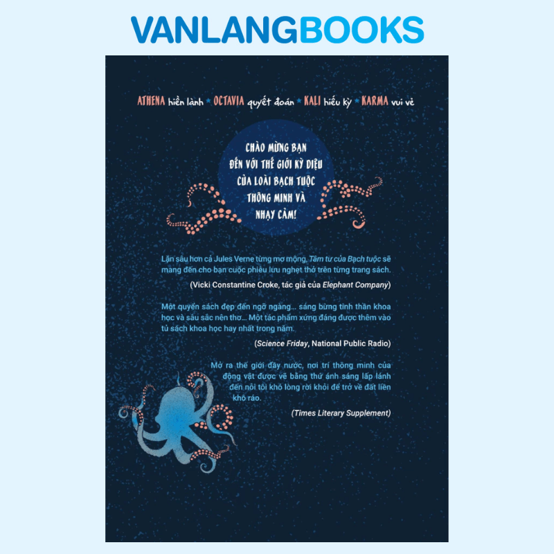 Tâm Tư Của Bạch Tuộc là tác phẩm phi hư cấu nổi tiếng của nhà tự nhiên học Sy Montgomery một cuốn sách vừa mang tinh thần khoa học, vừa giàu chất văn chương, đã chinh phục độc giả và giới phê bình quốc tế. Từ các bể thủy sinh ở New England đến những rạn san hô xa xôi tại Polynesia và vịnh Mexico, tác giả theo dấu loài bạch tuộc – sinh vật săn mồi đơn độc, thông minh và đầy cá tính. Thông qua những quan sát trực tiếp và mối “kết bạn” đặc biệt với từng cá thể bạch tuộc, cuốn sách mở ra một thế giới dưới nước sống động, nơi trí tuệ động vật, khả năng tưởng tượng và cảm xúc được thể hiện theo cách khiến con người phải suy ngẫm lại về ranh giới giữa con người và tự nhiên. Tâm Tư Của Bạch Tuộc là New York Times Bestseller và được vinh danh bởi nhiều tổ chức uy tín như Huffington Post, Goodreads, Library Journal và Hiệp hội Thư viện Hoa Kỳ.