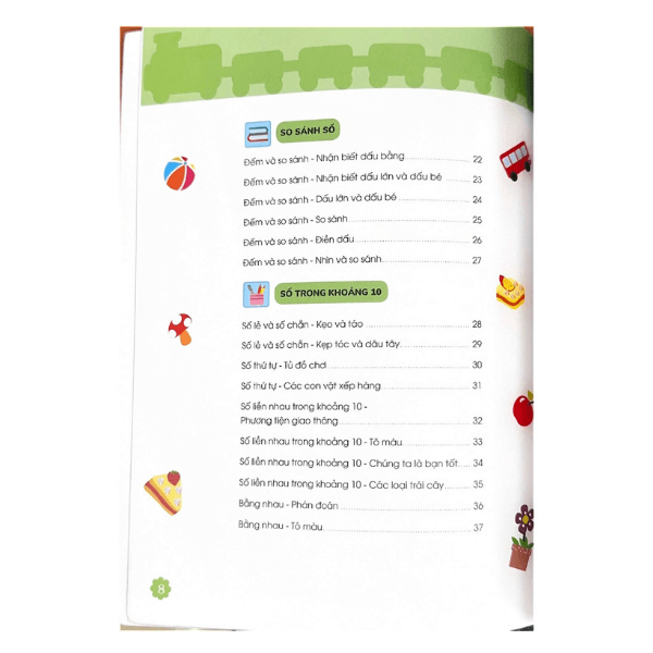 Sách giúp các bé so sánh, phân loại, nhận biết số và phát triển kỹ năng toán học nền tảng như cộng trừ, đếm số, nhận biết quy luật, từ đó tạo tiền đề vững chắc cho bậc tiểu học.