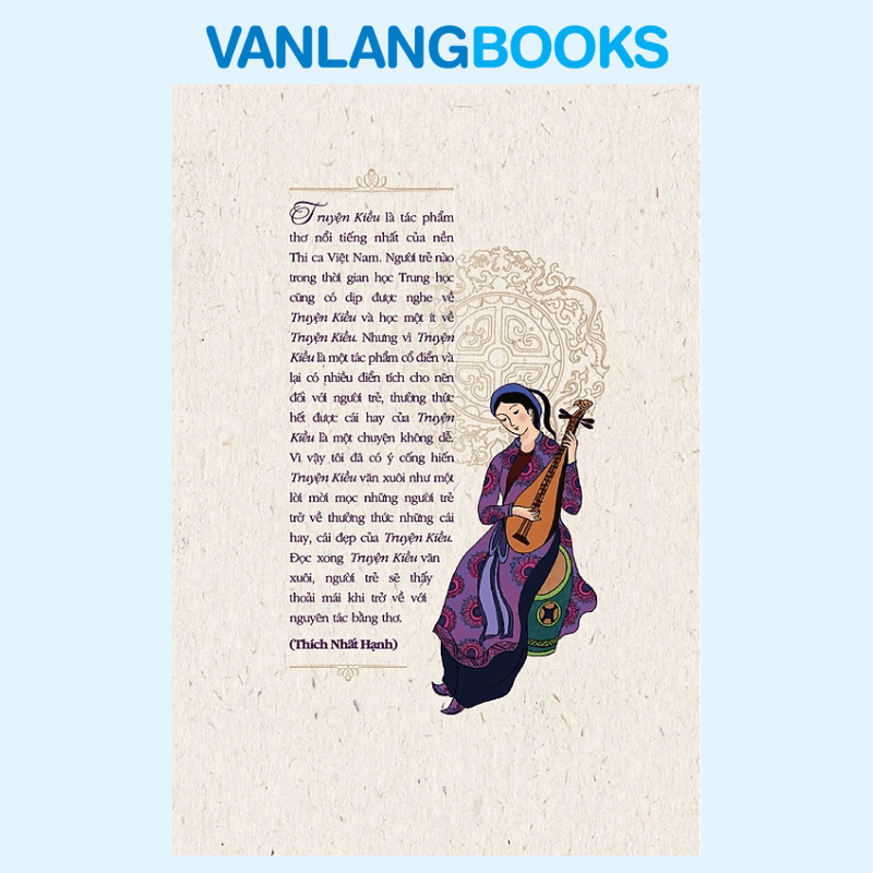 Truyện Kiều là tác phẩm thơ kinh điển, được xem là đỉnh cao của nền thi ca Việt Nam. Hầu hết người trẻ đều đã từng được nghe, học hoặc tiếp xúc với Truyện Kiều trong những năm tháng Trung học. Tuy nhiên, do ngôn ngữ cổ, nhiều điển tích và bối cảnh lịch sử đặc thù, việc cảm thụ trọn vẹn vẻ đẹp của Truyện Kiều không phải lúc nào cũng dễ dàng. Xuất phát từ mong muốn đưa người trẻ đến gần hơn với kiệt tác này, Thiền sư Thích Nhất Hạnh đã biên soạn Truyện Kiều Văn Xuôi như một lời mời gọi đầy ân cần: mời người trẻ quay lại thưởng thức những giá trị nhân văn, cái hay, cái đẹp của Truyện Kiều bằng một lối tiếp cận nhẹ nhàng, dễ hiểu hơn. Thông qua hình thức văn xuôi trong sáng, mạch lạc, cuốn sách giúp người đọc tiếp cận nội dung, tinh thần và chiều sâu của Truyện Kiều một cách thoải mái. Sau khi đọc xong bản văn xuôi, người trẻ sẽ có tâm thế vững vàng và hứng thú hơn khi trở về với nguyên tác bằng thơ.
